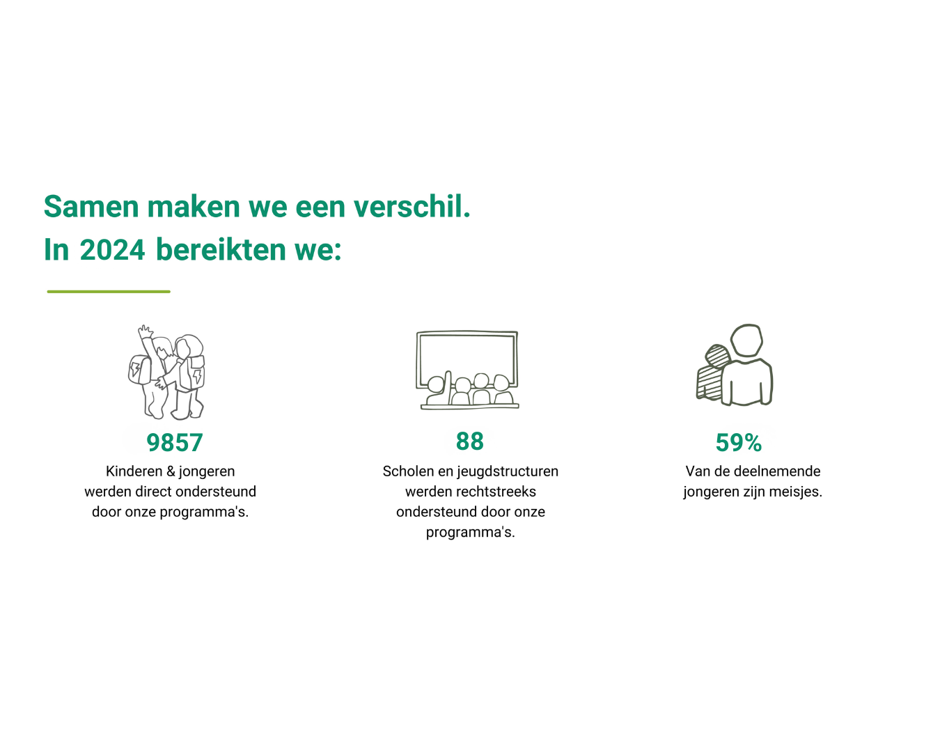 Enerzijds creëren we deze leeromgevingen zelf en anderzijds ondersteunen en versterken we 15 lokale partners in vijf landen met specifieke expertise rond jongerenempowerment. We leren actief van elkaar over hoe we omgevingen kunnen creëren waarin alle kinderen en jongeren kunnen participeren en zich fysiek, sociaal en emotioneel veilig kunnen voelen door vaardigheden, kennis en netwerken te versterken.